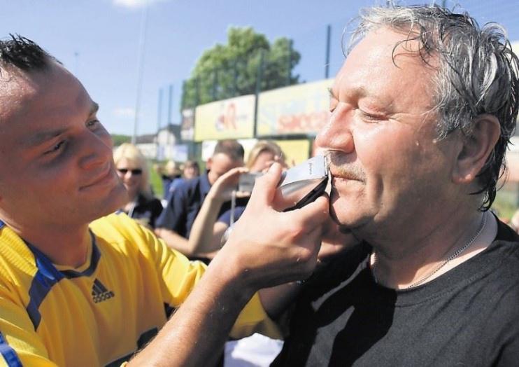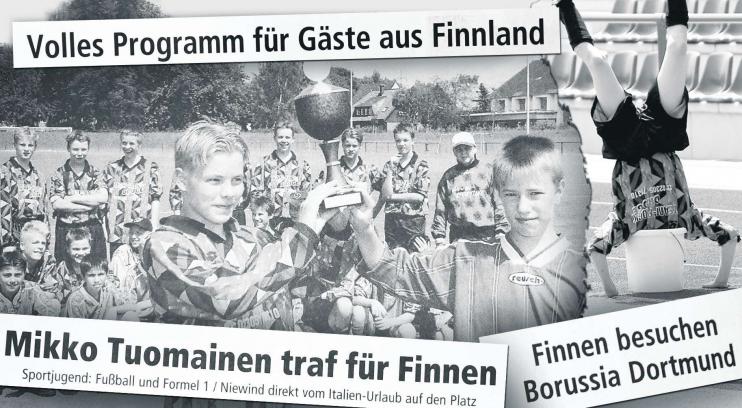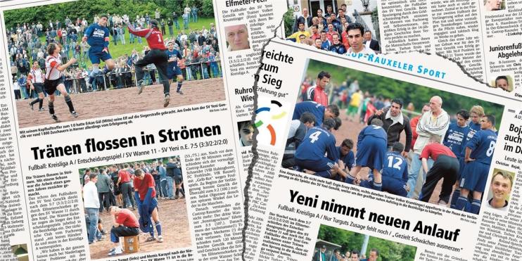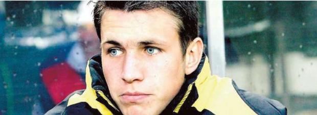 Samstags in Kaiserslautern: Einen Klaps gibt BVB-Trainer Bert van Marwijk seinem Nachwuchsspieler Marc Kruska mit auf den Weg in die Fußball-Bundesliga (links). Sonntags in Rauxel: Kruska an seiner alten Wirkungsstätte, dem Sportplatz des VfR Rauxel an der Vördestraße. RN-Foto/Repro: Lukas