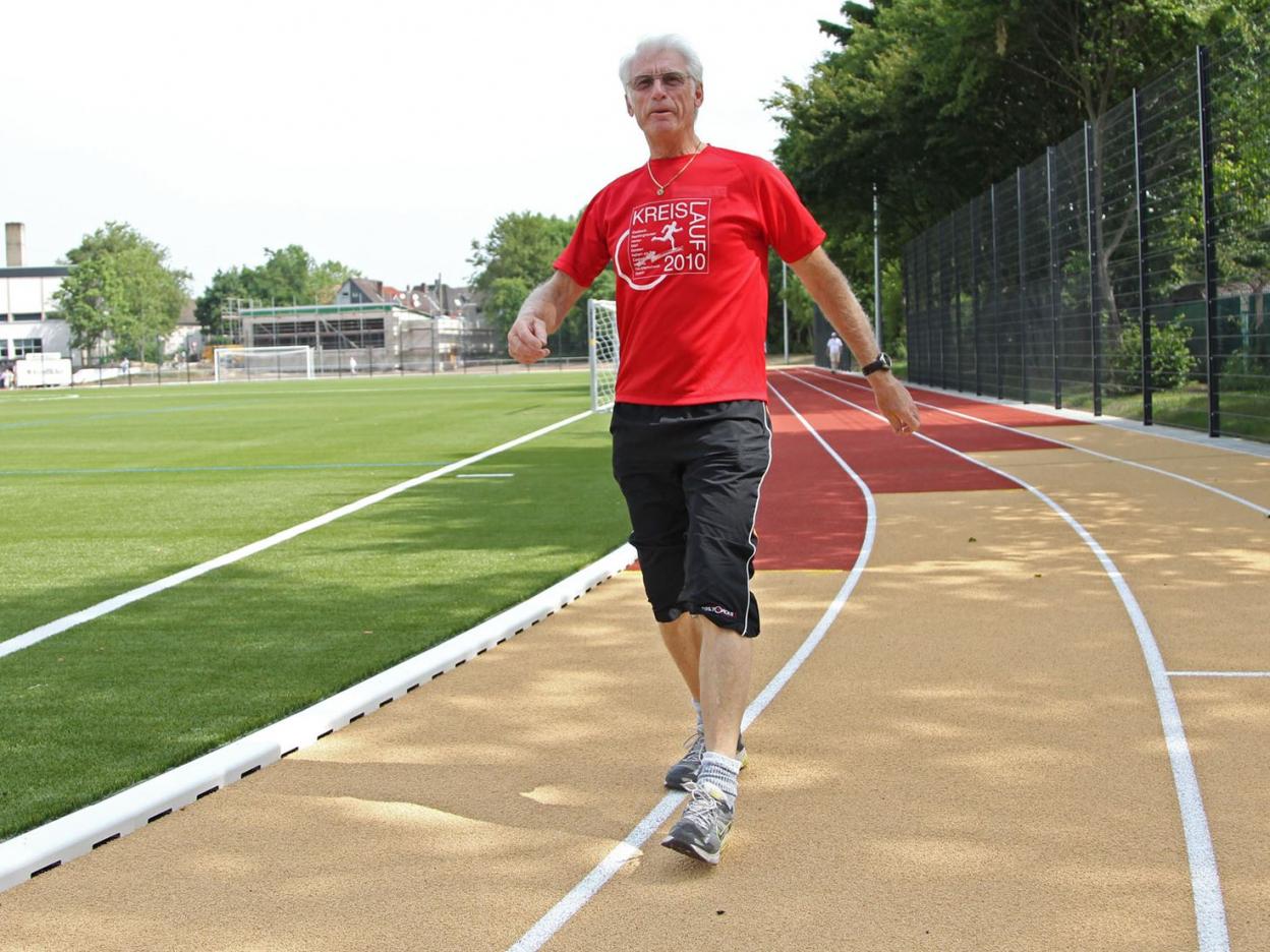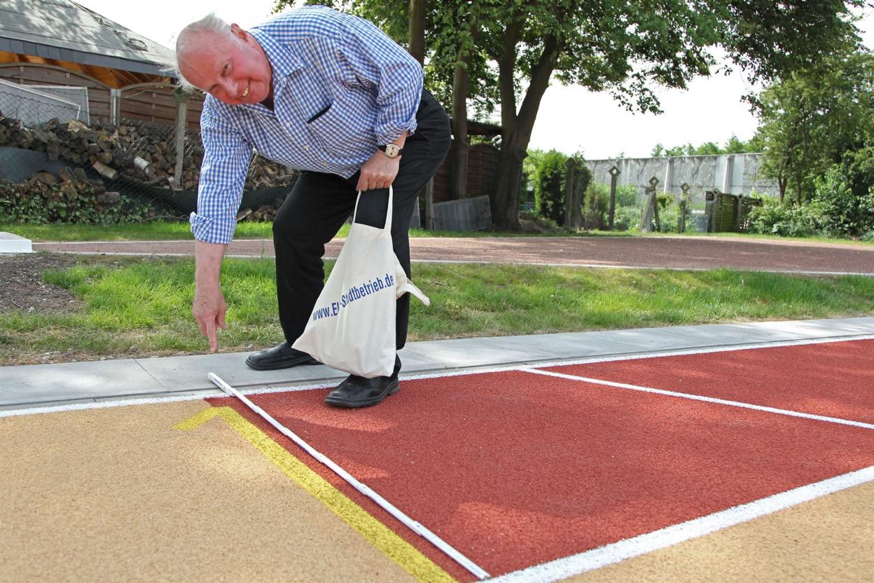 Einen Makel hat Erwin Bathke im Stadion an der Bahnhofstraße festgestellt: „Dort ist sogar die Laufbahn an einigen Stellen wellig.“