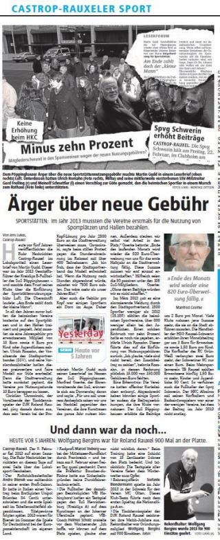 Februar 2013: Vereine ärgerten sich über neue Gebühr